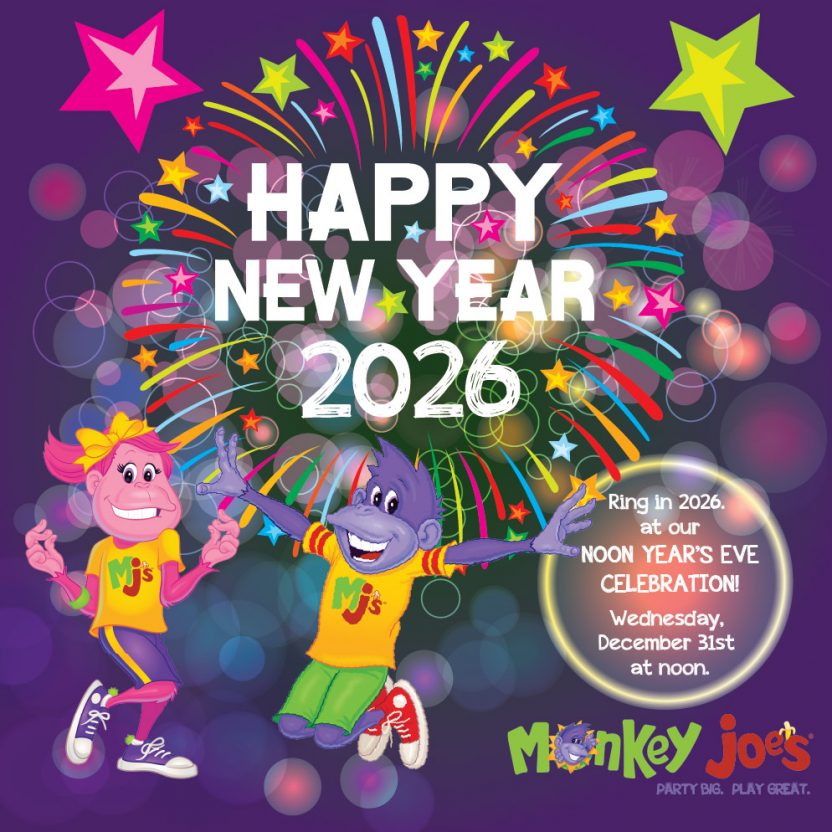 Get ready to dive into the Noon Year’s Eve celebration at Monkey Joe’s! It’s an event where the little ones enjoy the excitement of welcoming the new year without having to wait until the clock strikes midnight. Join us for a day filled with bouncing, fun, and giveaways as we ring in the Noon Year together!